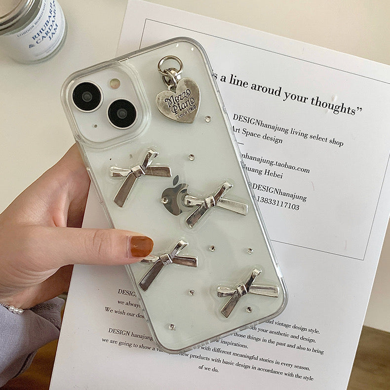 iPhoneケース 立体 リボン チャーム付き おしゃれ 透明 クリア スマホケース
