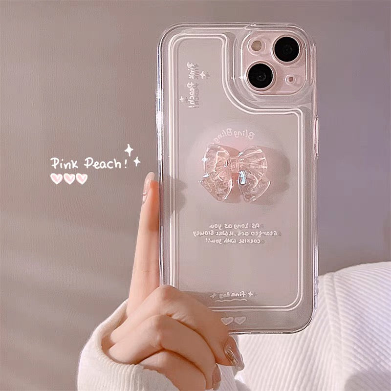 iPhoneケース かわいい 立体 リボン 透明 クリア スマホケース