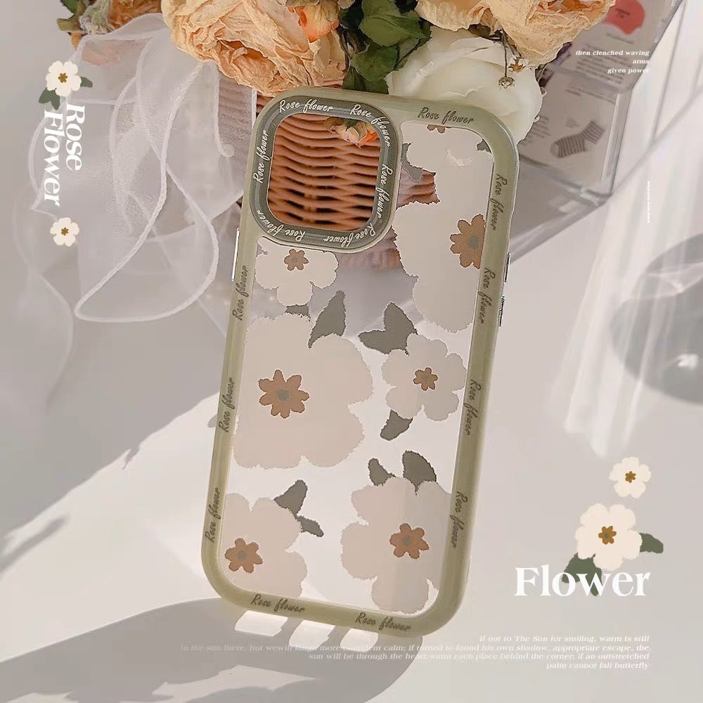 iPhoneケース かわいい ホワイト フラワー グリーン 半透明 クリア スマホケース