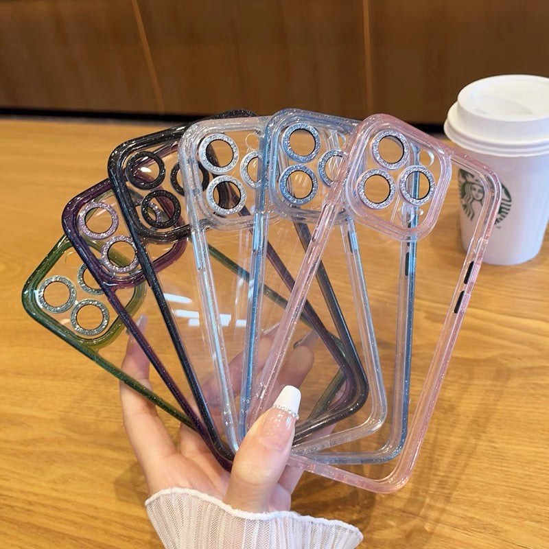 iPhoneケース キラキラ カメラ保護付き シンプル 透明 クリア スマホケース