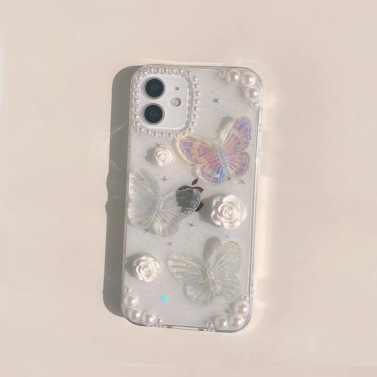 iPhoneケース 立体 蝶々 フラワー 透明 クリア スマホケース