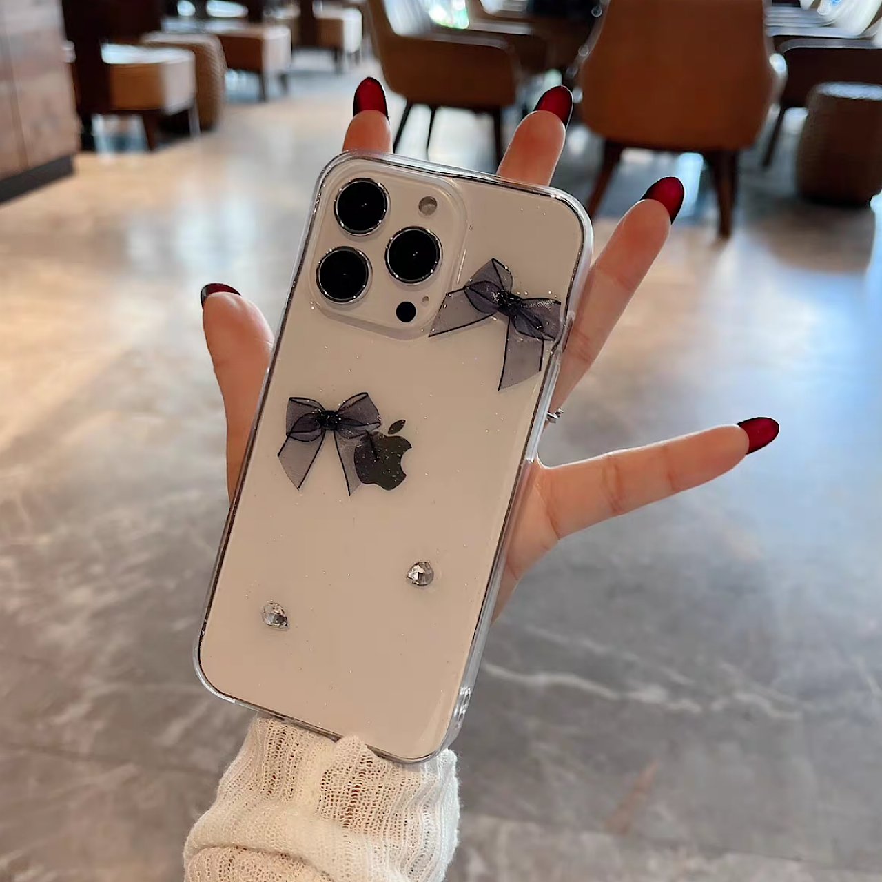 iPhoneケース おしゃれ リボン付き 透明 クリア スマホケース
