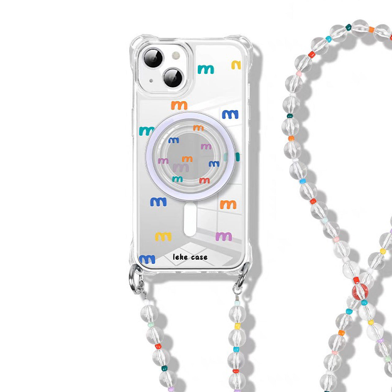 iPhoneケース カラフル M字 マグセーフ対応 おしゃれ 透明 ショルダー スマホケース