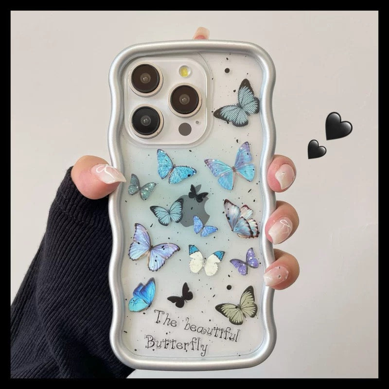 iPhoneケース おしゃれ ホワイト 蝶々 うねうね 透明 韓国 スマホケース