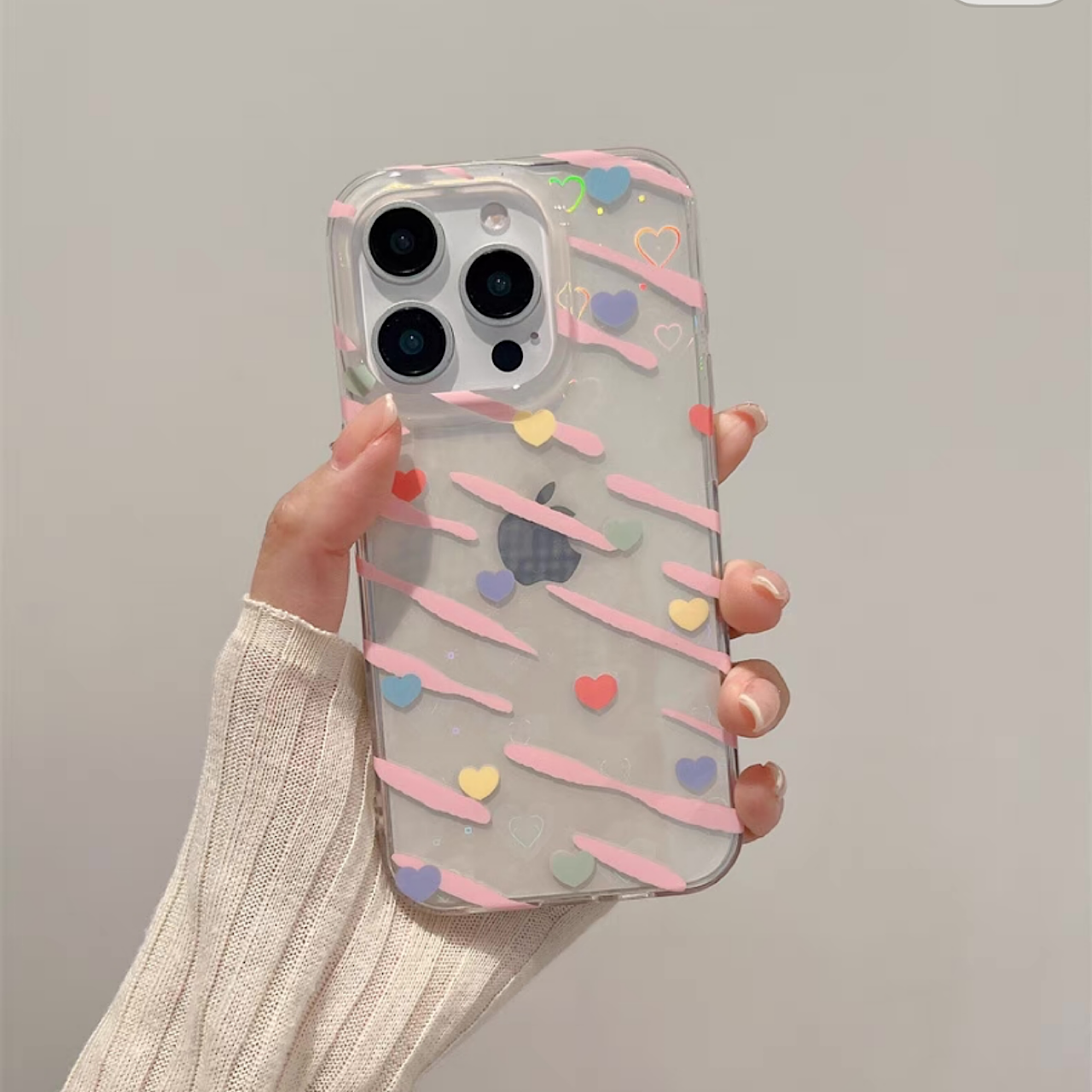 iPhoneケース カラフル ハート おしゃれ 透明 クリア スマホケース