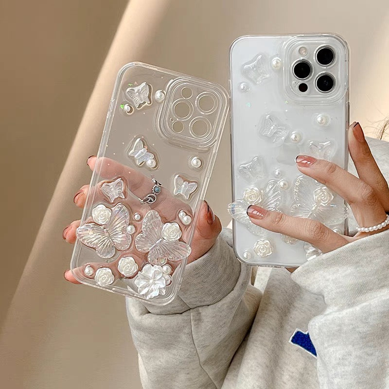 iPhoneケース 立体 蝶々 かわいい 透明 クリア スマホケース